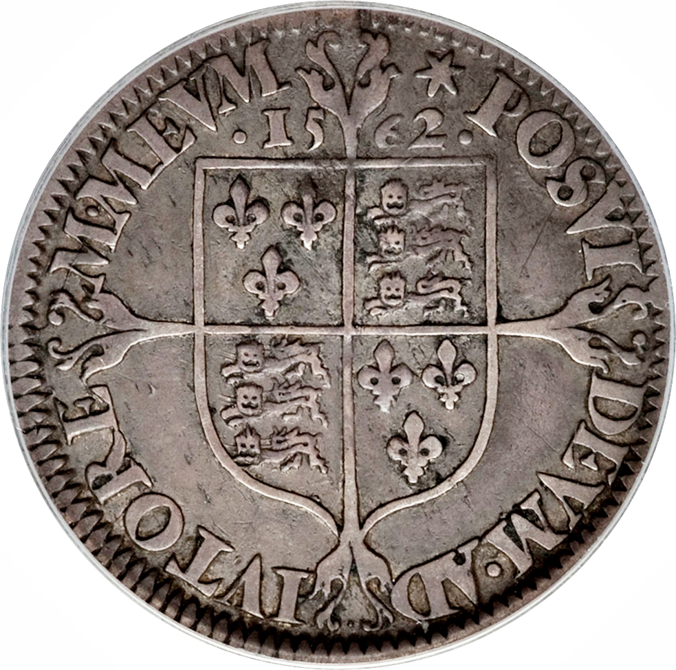 Описание: Квадратный герб Англии и Франции на длинном кресте, разделяющем надпись с датой 1562 года над щитом.