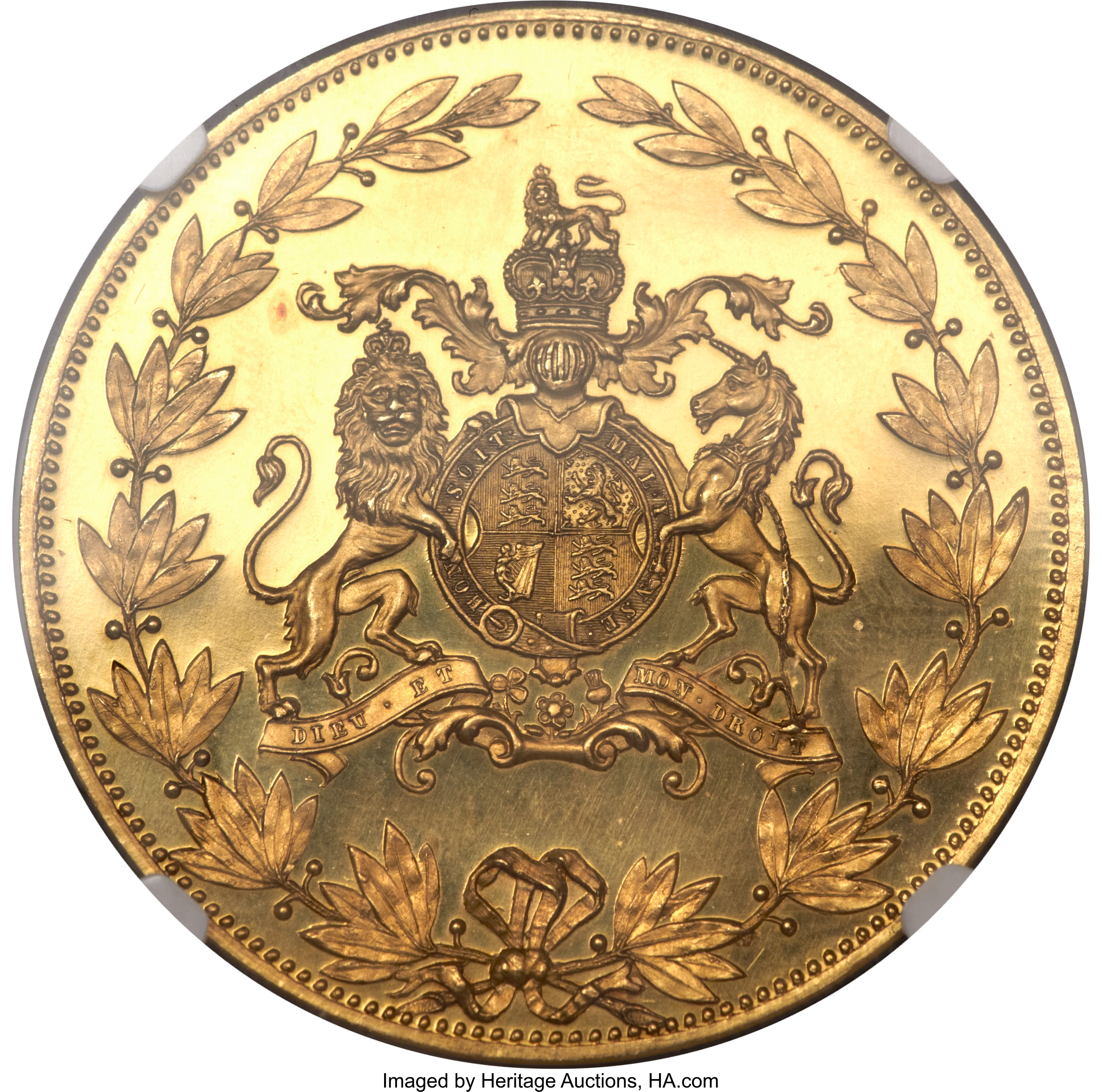Описание: Великий портрет королеви Вікторії в молодому віці, звернений вліво, без корони, але з волоссям, пов'язаним двома стрічками без прикрас, що закінчуються хвостиком, точно скопійований з дизайну Вайона, викарбуваного в Лондоні на початку правління. Плоска шестикутна зірка розташована по центру під портретом.