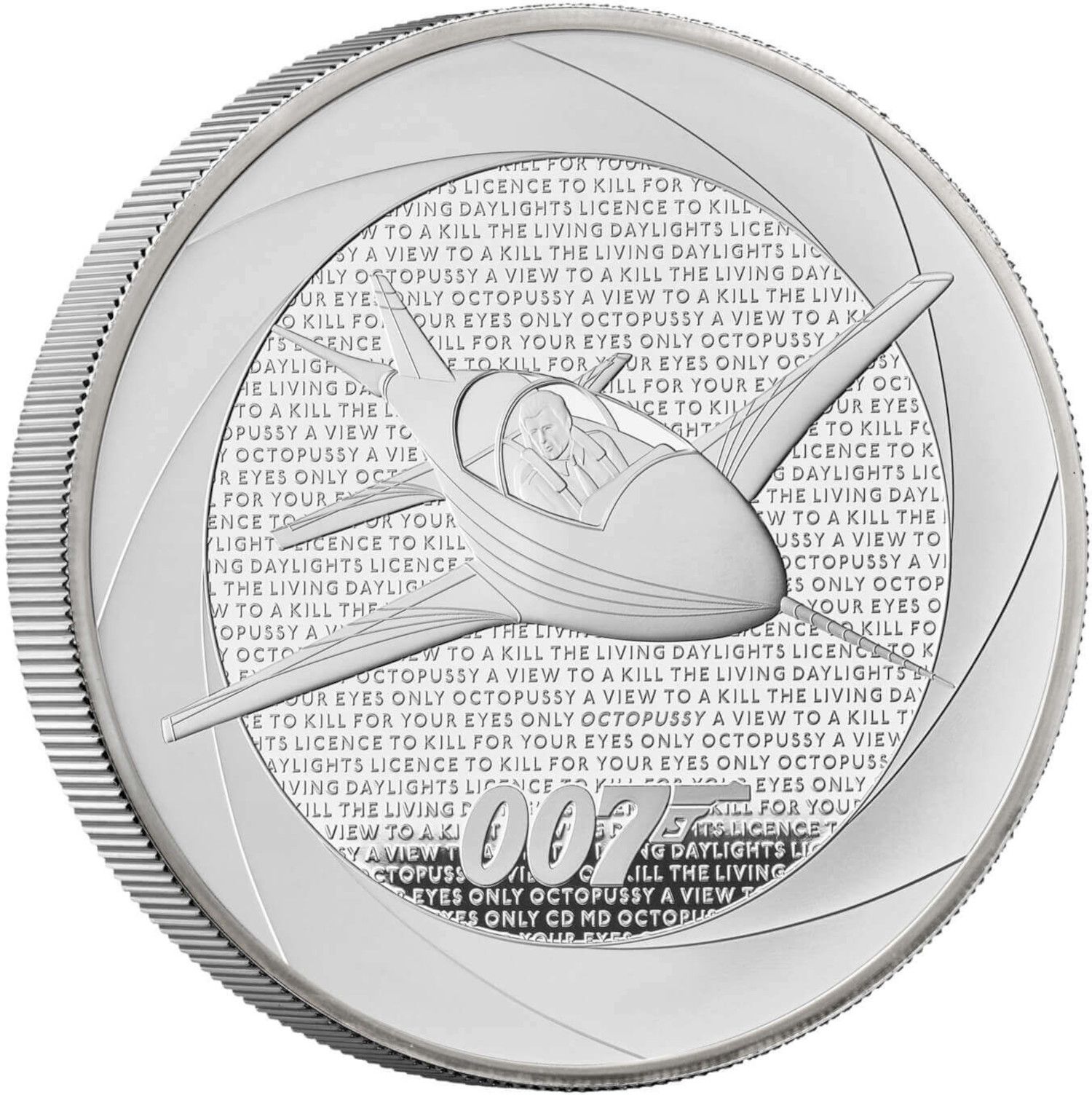 Описание: Изображение самолета Джеймса Бонда с акростихом из фильма «Осьминожка», на фоне титров фильмов о Джеймсе Бонде 1980-х годов и надписи «007».