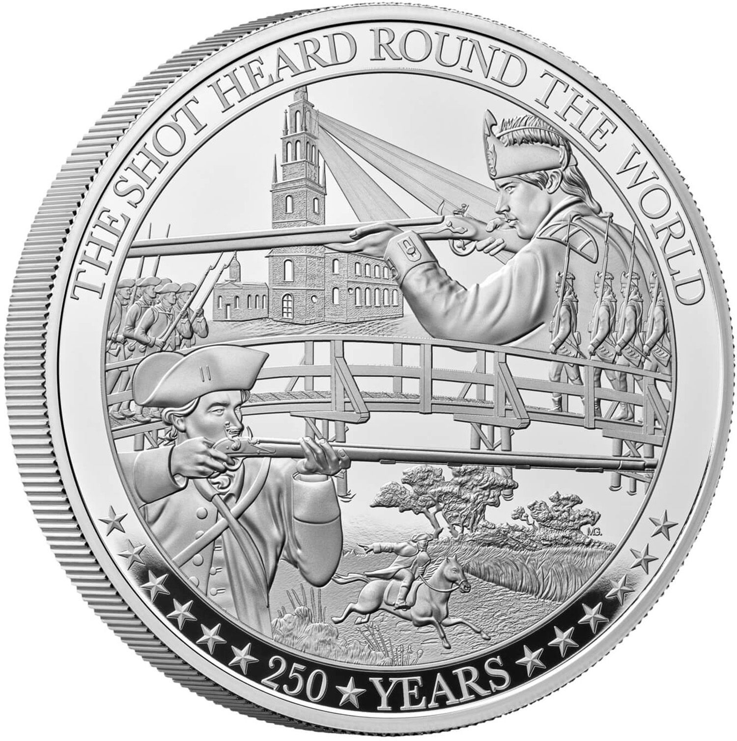 10 фунтов — Карл III (Битвы при Лексингтоне и Конкорде; серебряный пиедфорт)