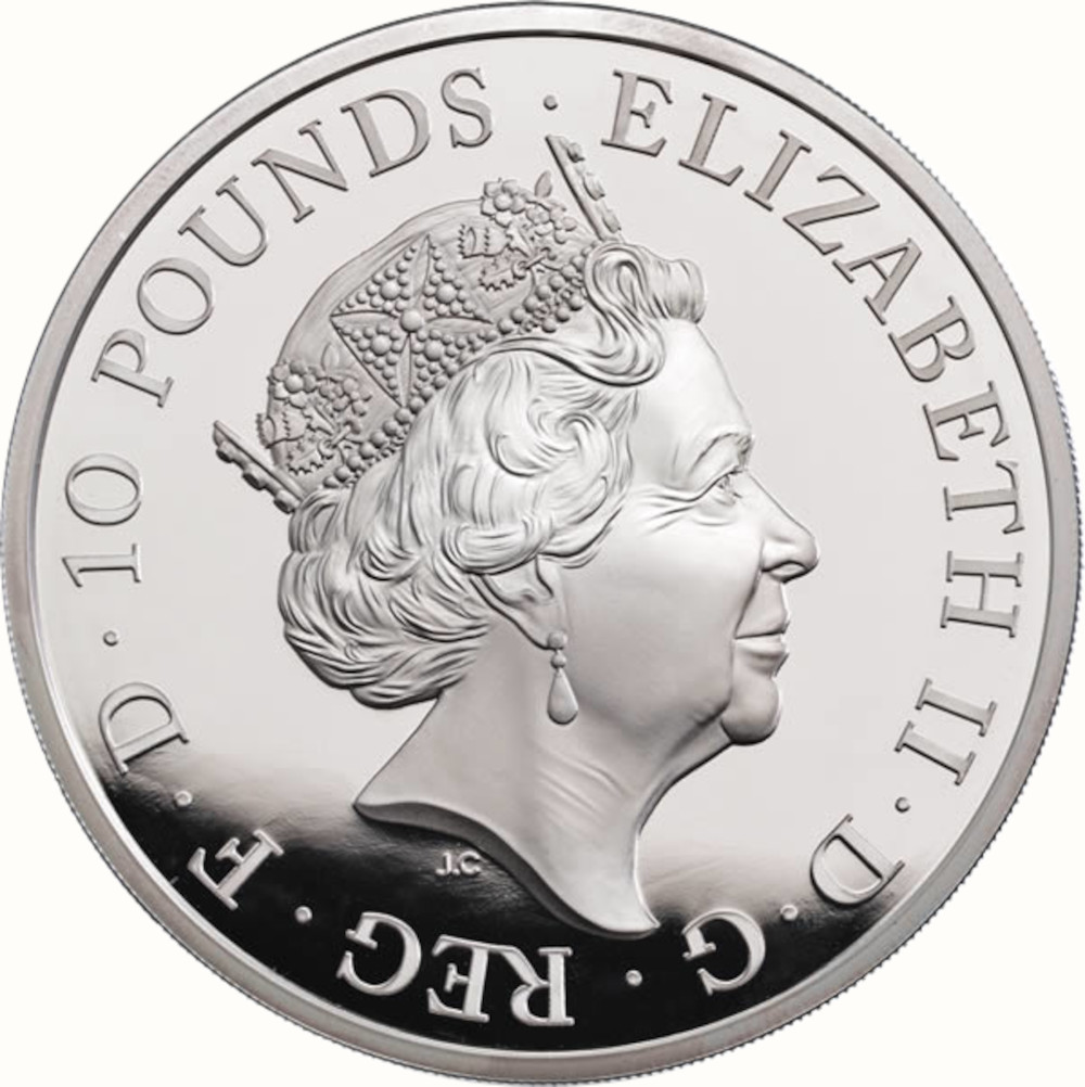10 фунтів — Єлизавета II (Лев Англії; срібний п'єдфорт)