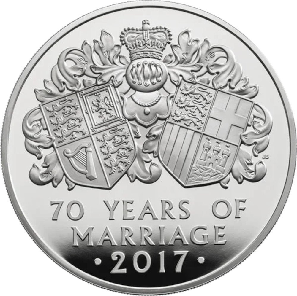 10 фунтов — Елизавета II (Платиновая свадьба; серебряная проба)