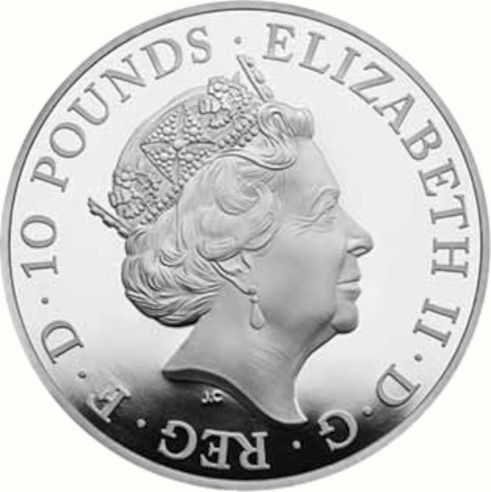 10 фунтов — Елизавета II (The Queen's Beasts Completer; серебряный пиедфорт)