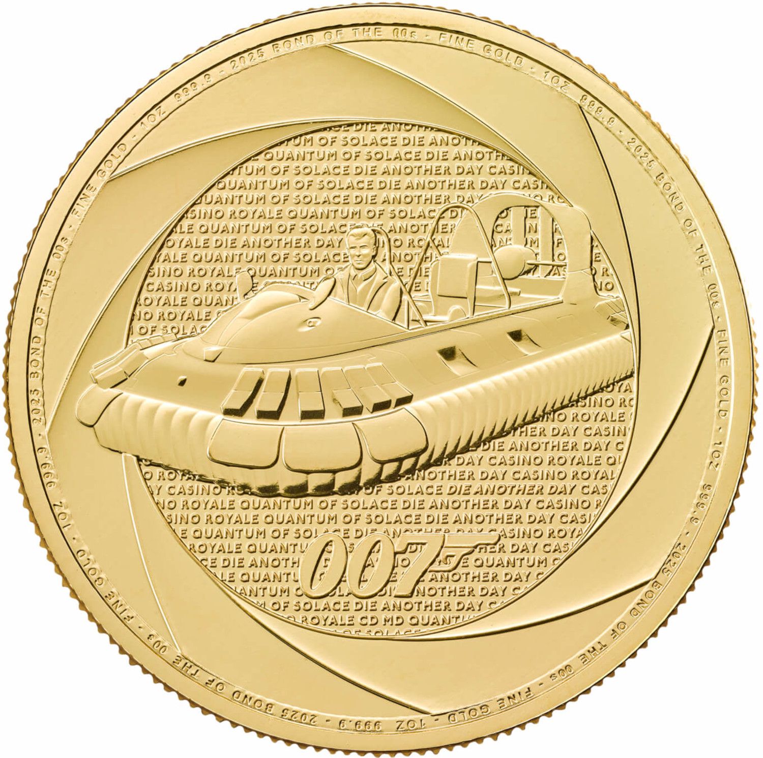 Описание: Изображение судна на воздушной подушке из фильма «Умри, но не сейчас», на фоне титров фильмов о Джеймсе Бонде 2000-х годов и надписи «007».