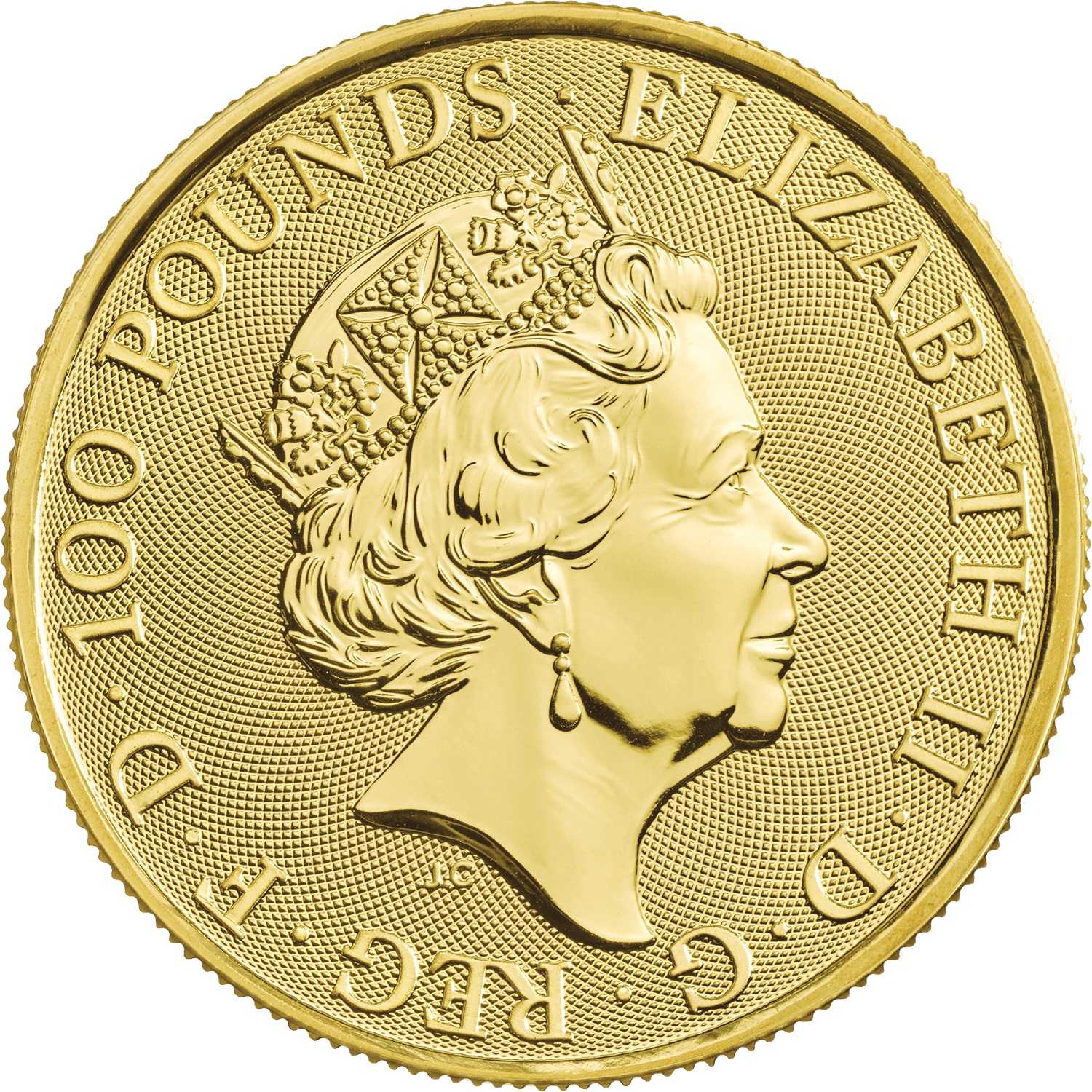 100 фунтів — Єлизавета II (Білий лев Мортімера; 1 унція чистого золота)