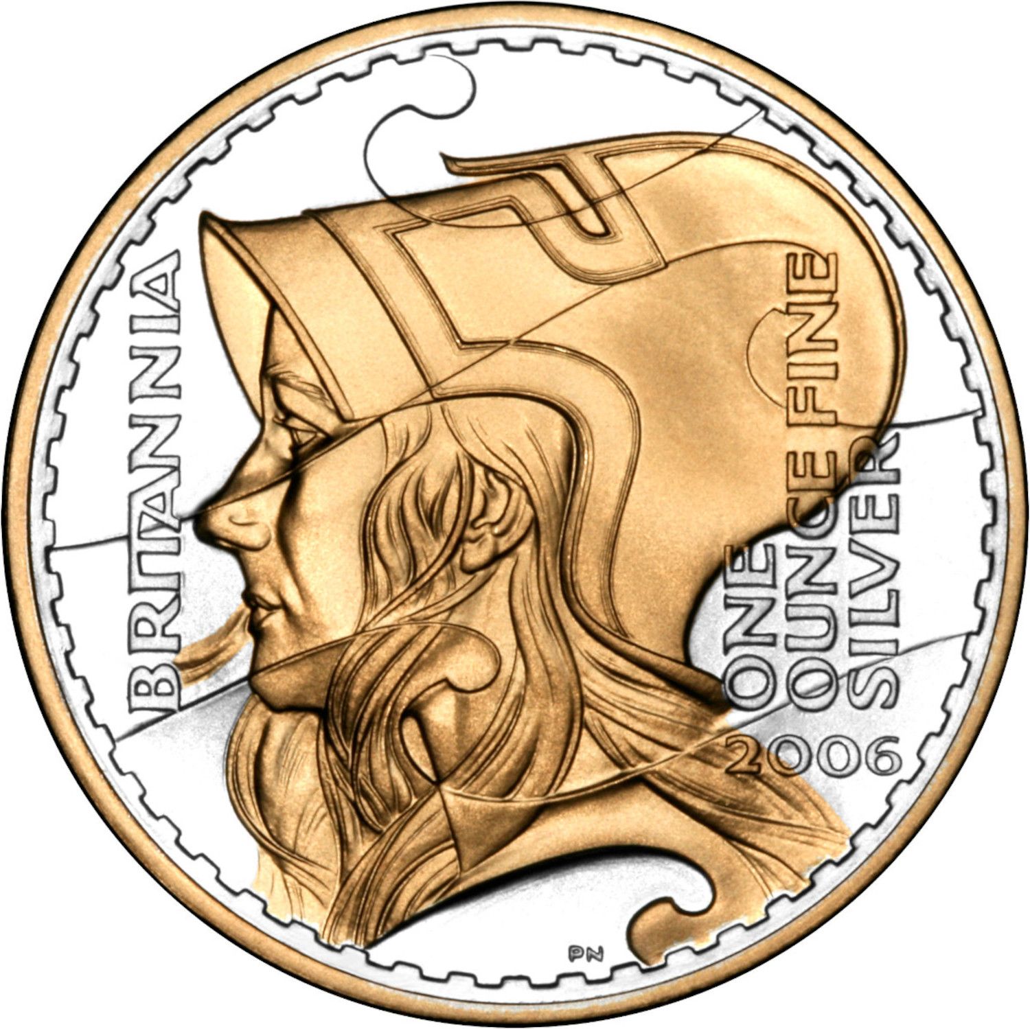 Описание: Голова Британии в шлеме, обращенная влево, наложенная на стилизованную волну, надпись спереди и сзади.