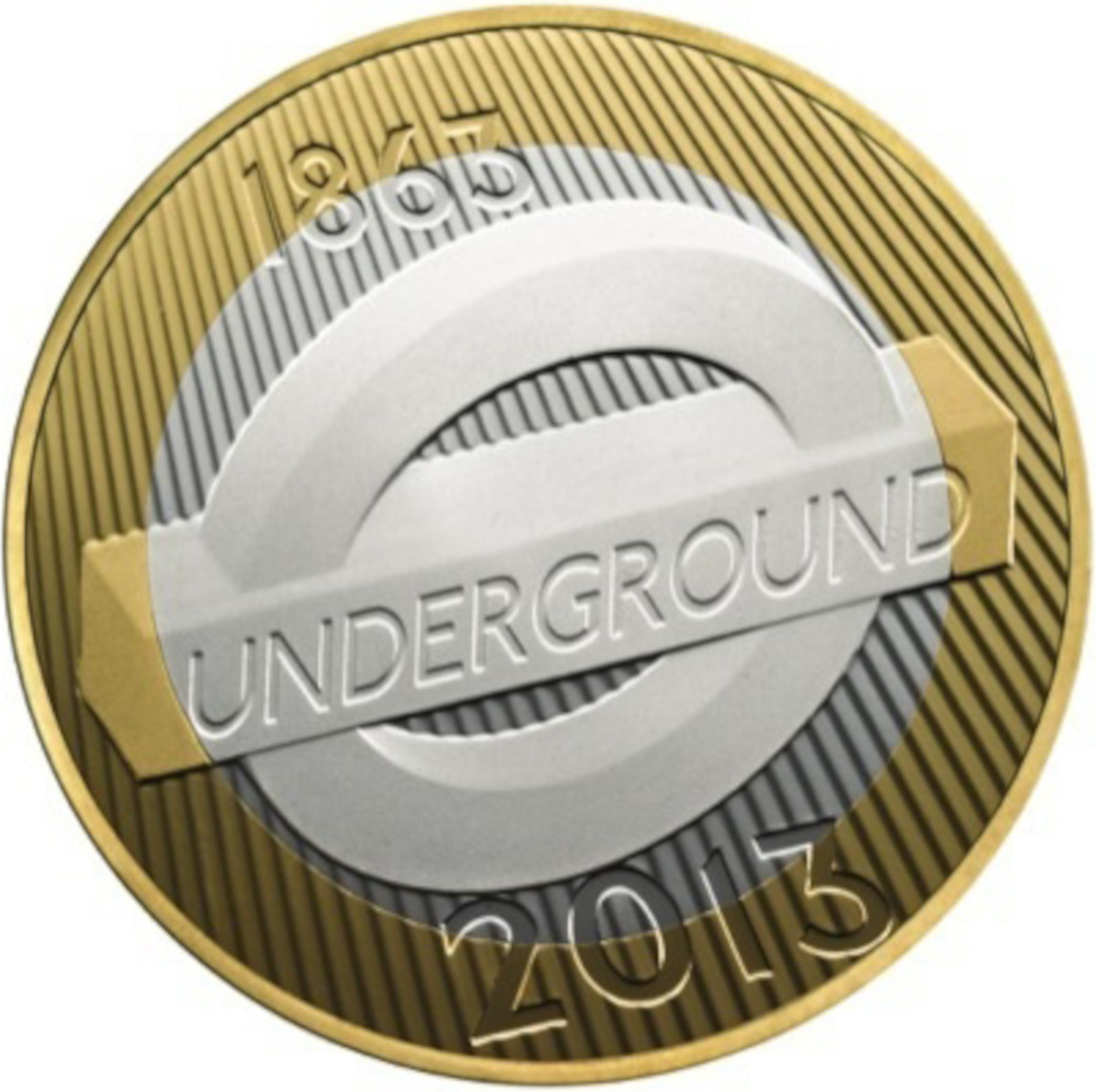 2 фунти — Єлизавета II (логотип лондонського метро; срібна монета)