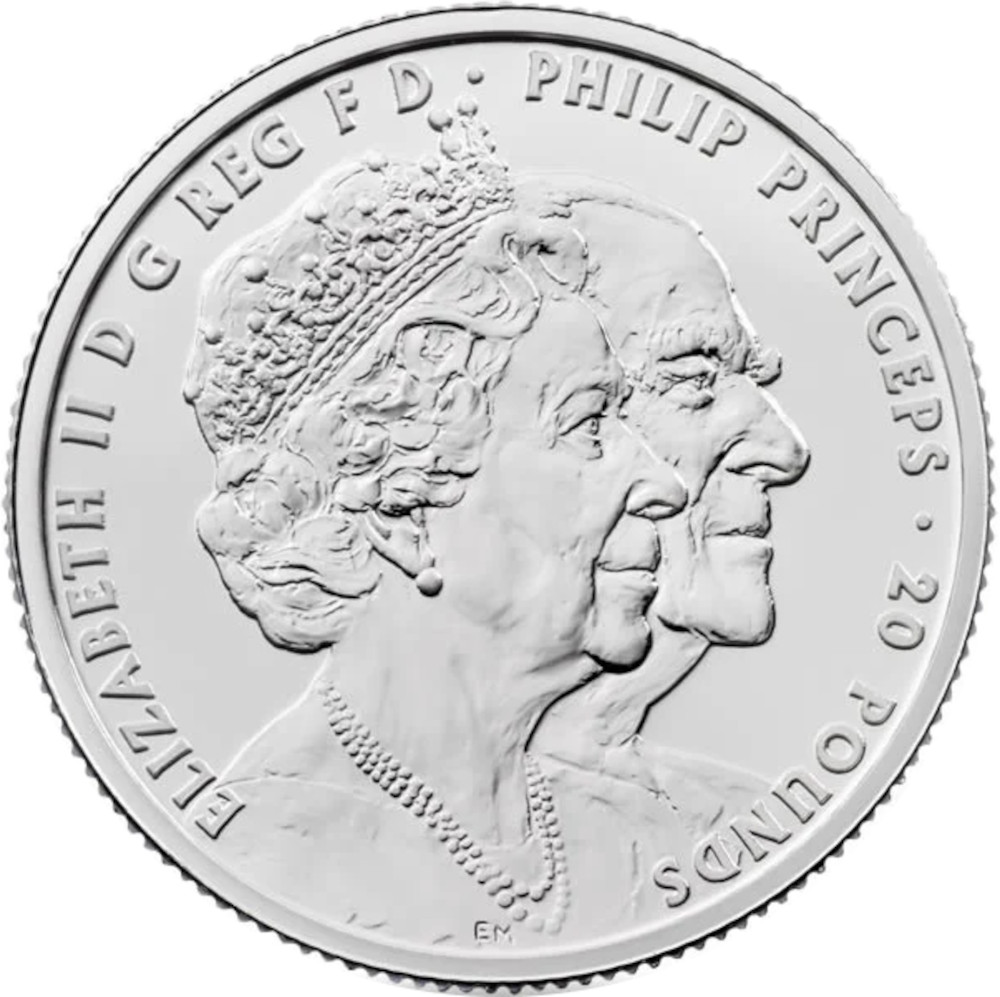 Название: 20 фунтов — Елизавета II (платиновая свадьба; чистое серебро)