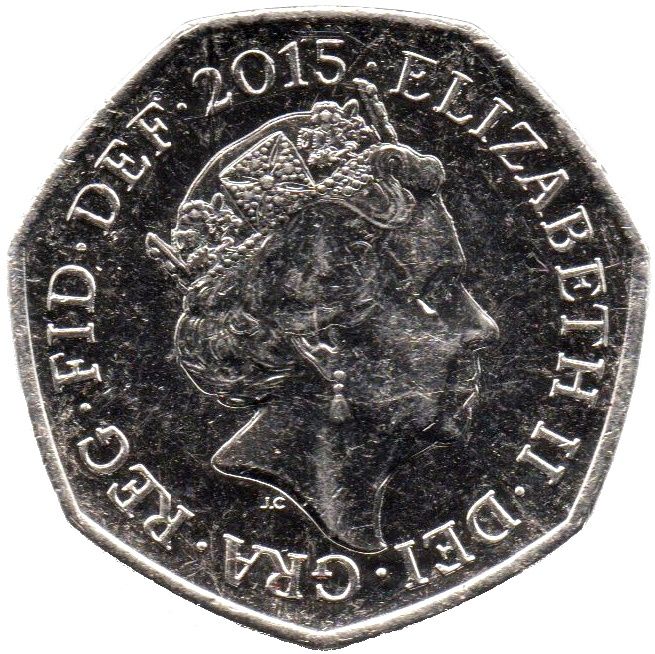 50 пенсов — Елизавета II (5-й портрет; королевский герб)