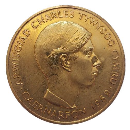 Медаль — Чарльз, принц Уельський (інвеститура; Королівський монетний двір; позолочена бронза, 58 мм)
