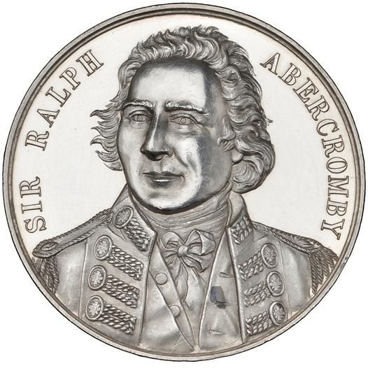 Описание: Бюст Аберкромбі, обличчя, голова без головного убору (три чверті ліворуч). Повна уніформа розстебнута, під пальтом і над жилетом з правого плеча видно краватку та стрічку Великого хреста.