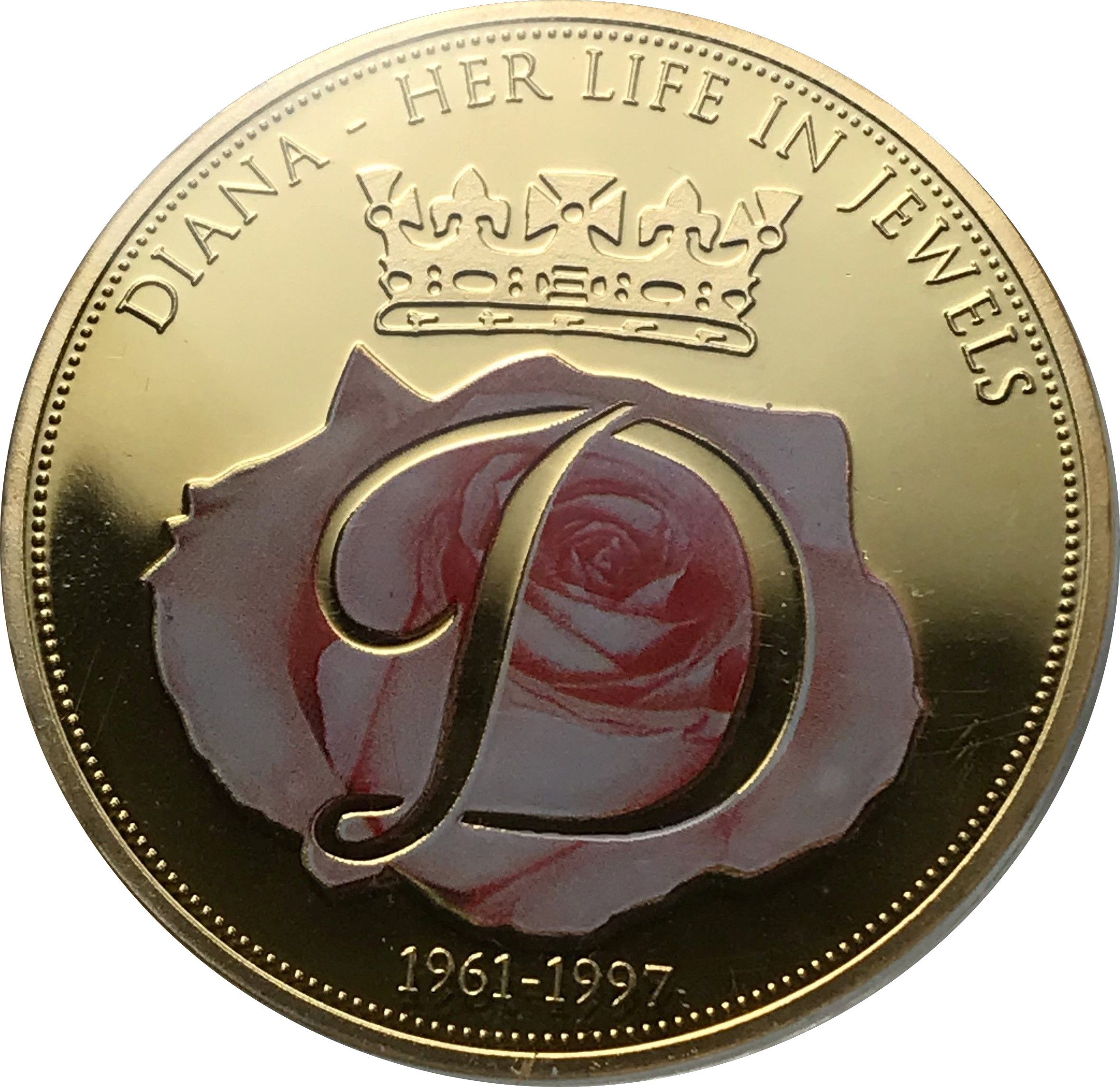 Описание: Рожева троянда з короною «D» над нею. Назва серії монет над короною та роки життя Діани (1961-1997) під трояндою.