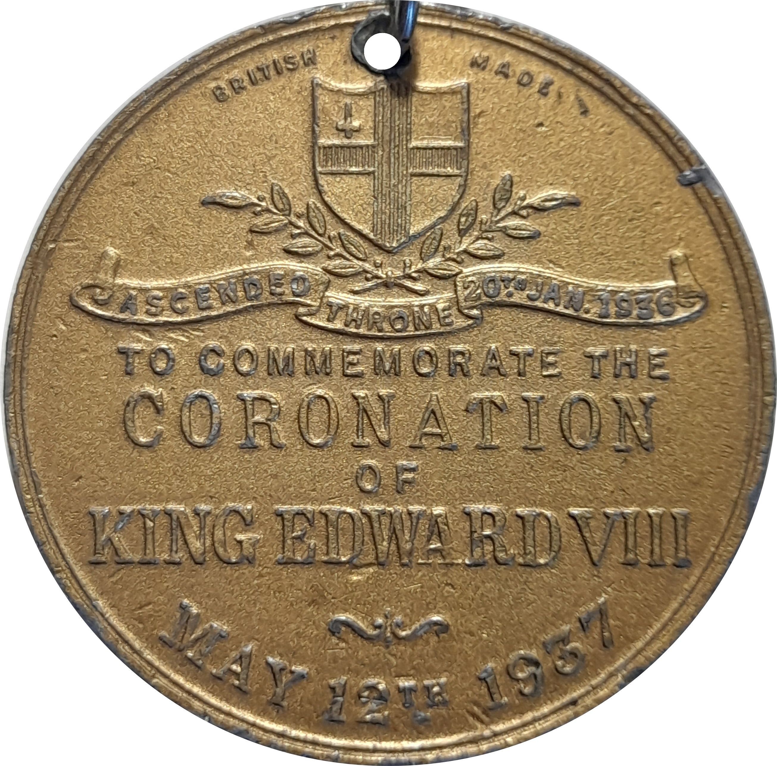 Медаль — Едуард VIII (запропонована коронація; позолочений білий метал, 38 мм)