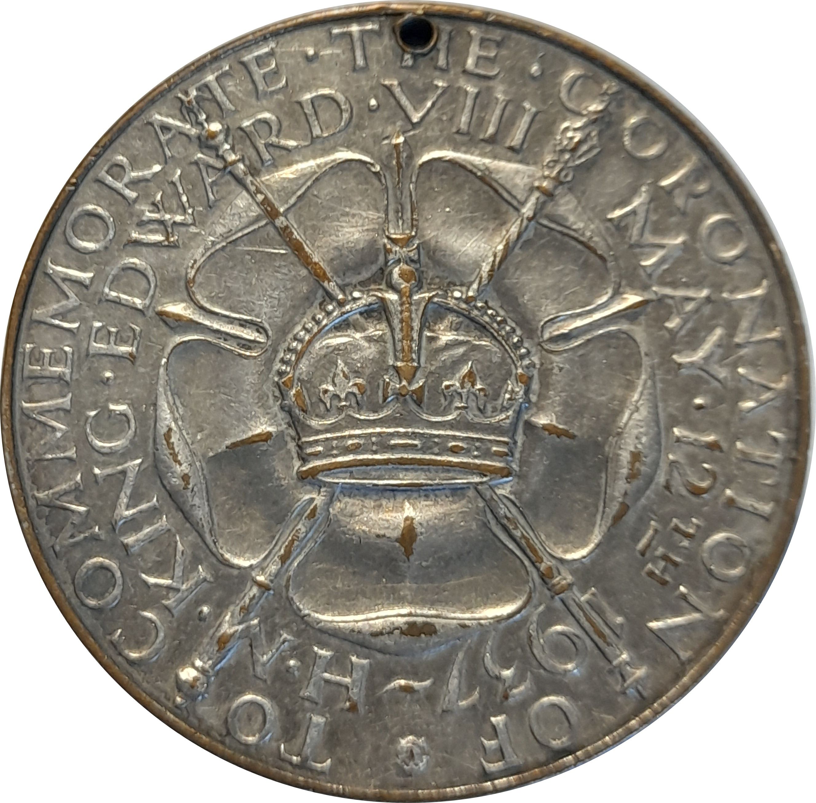 Медаль — Едуард VIII (запропонована коронація; шпильки; посрібнена бронза, 35 мм)