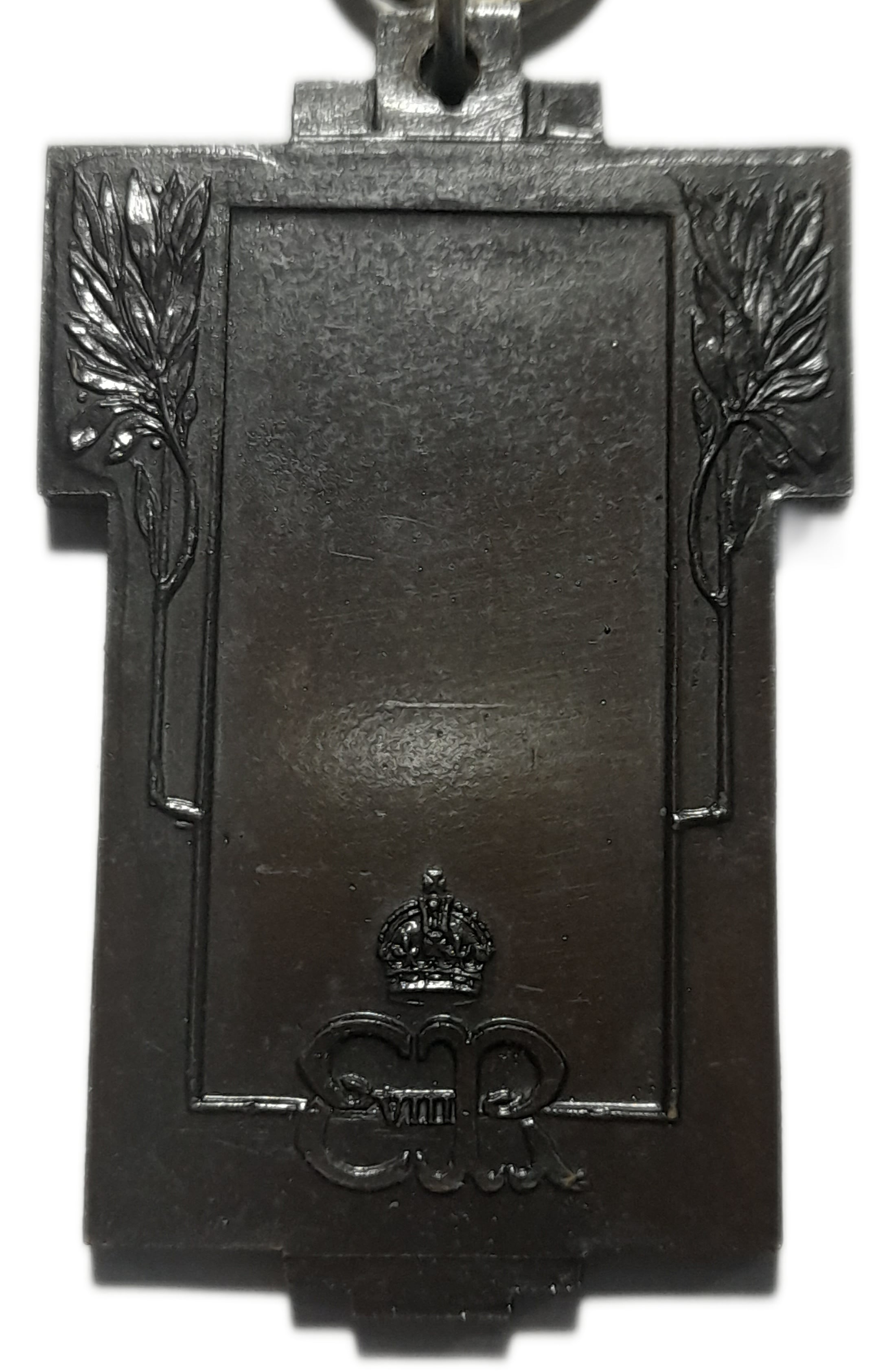 Описание: Центральна порожня рамка з лавровими гілками ліворуч і праворуч. Коронований монограм нижче.