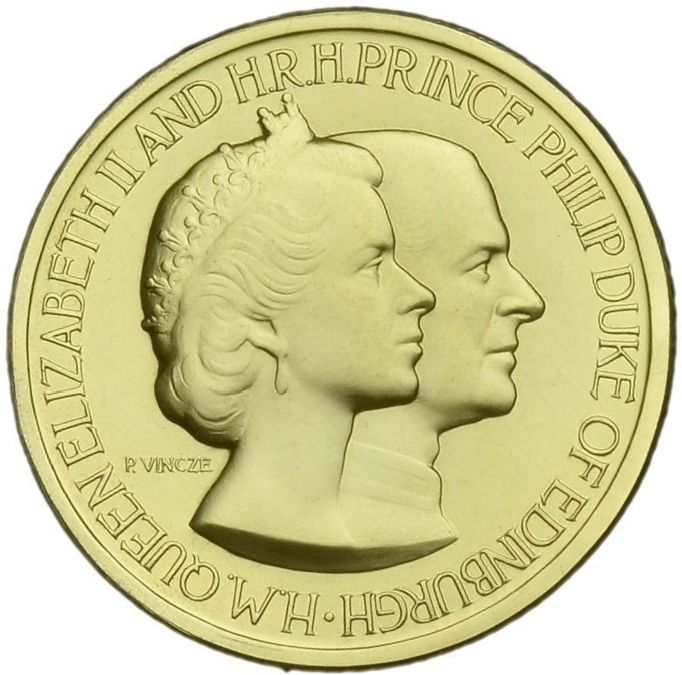 Медаль — Єлизавета II та Філіп (Срібне весілля; Королівський монетний двір)