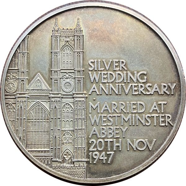 Медаль — Єлизавета II та Філіп (Срібне весілля; Toye, Kenning & Spencer)