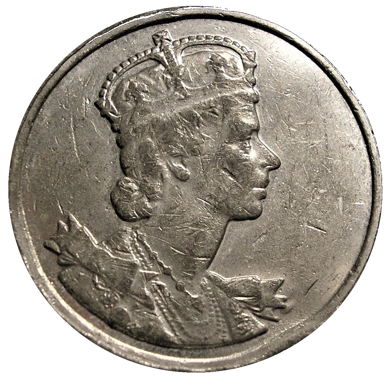Описание: Коронований бюст королеви Єлизавети II, звернений праворуч