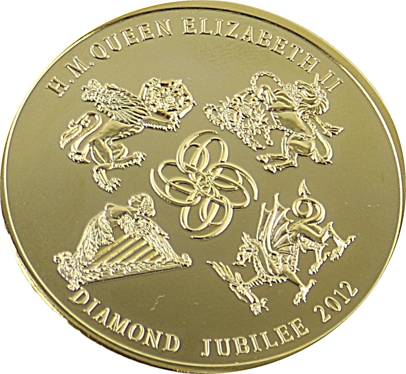 Описание: Зображення національних символів Англії (лев), Шотландії (єдиноріг), Ірландії (арфа) та Уельсу (дракон) з чотирма символами 60 посередині.