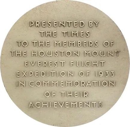 Медаль — Перший політ над Еверестом 1933 року