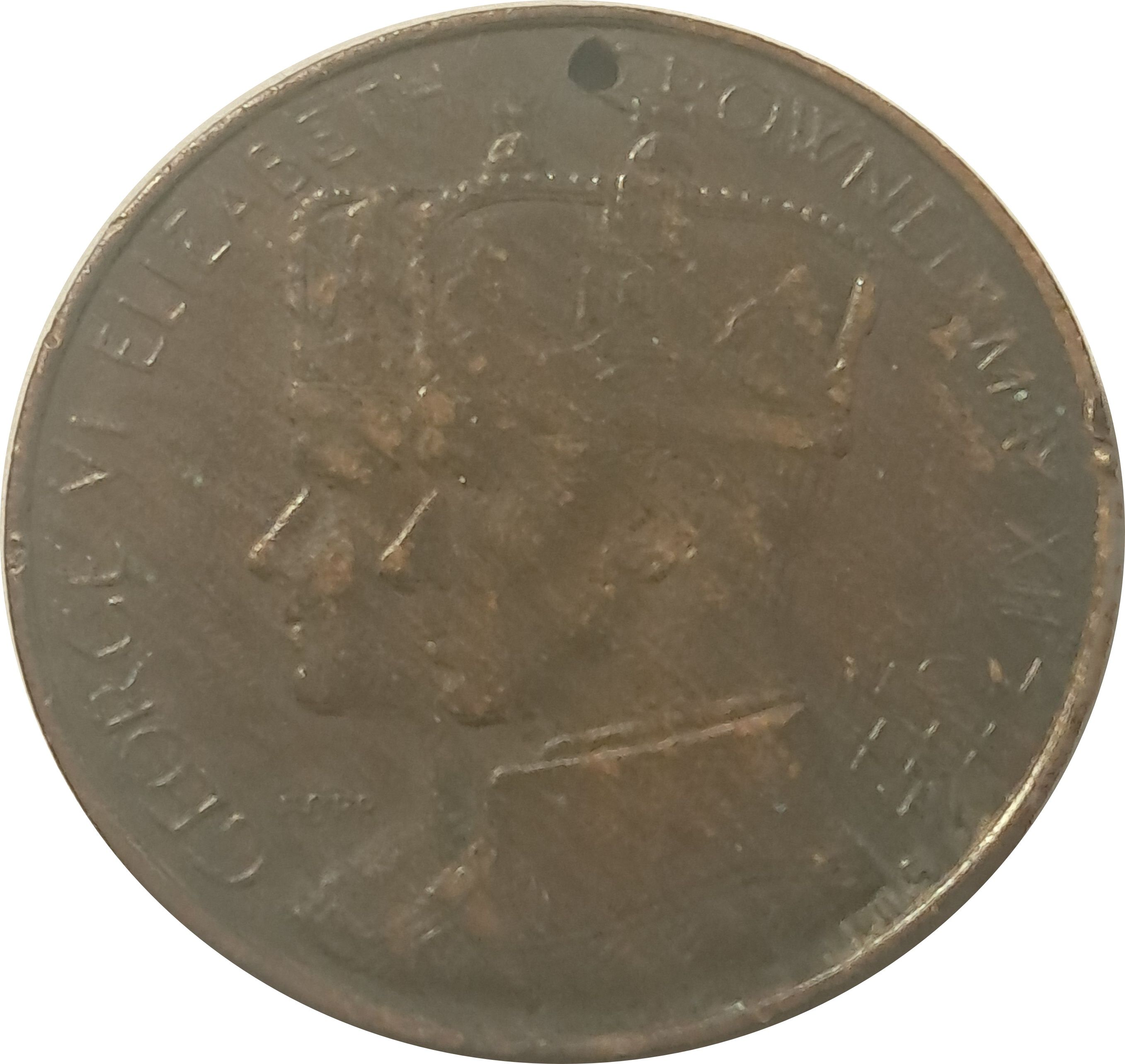 Описание: З'єднані короновані бюсти Георга VI та Єлизавети, звернені вліво.