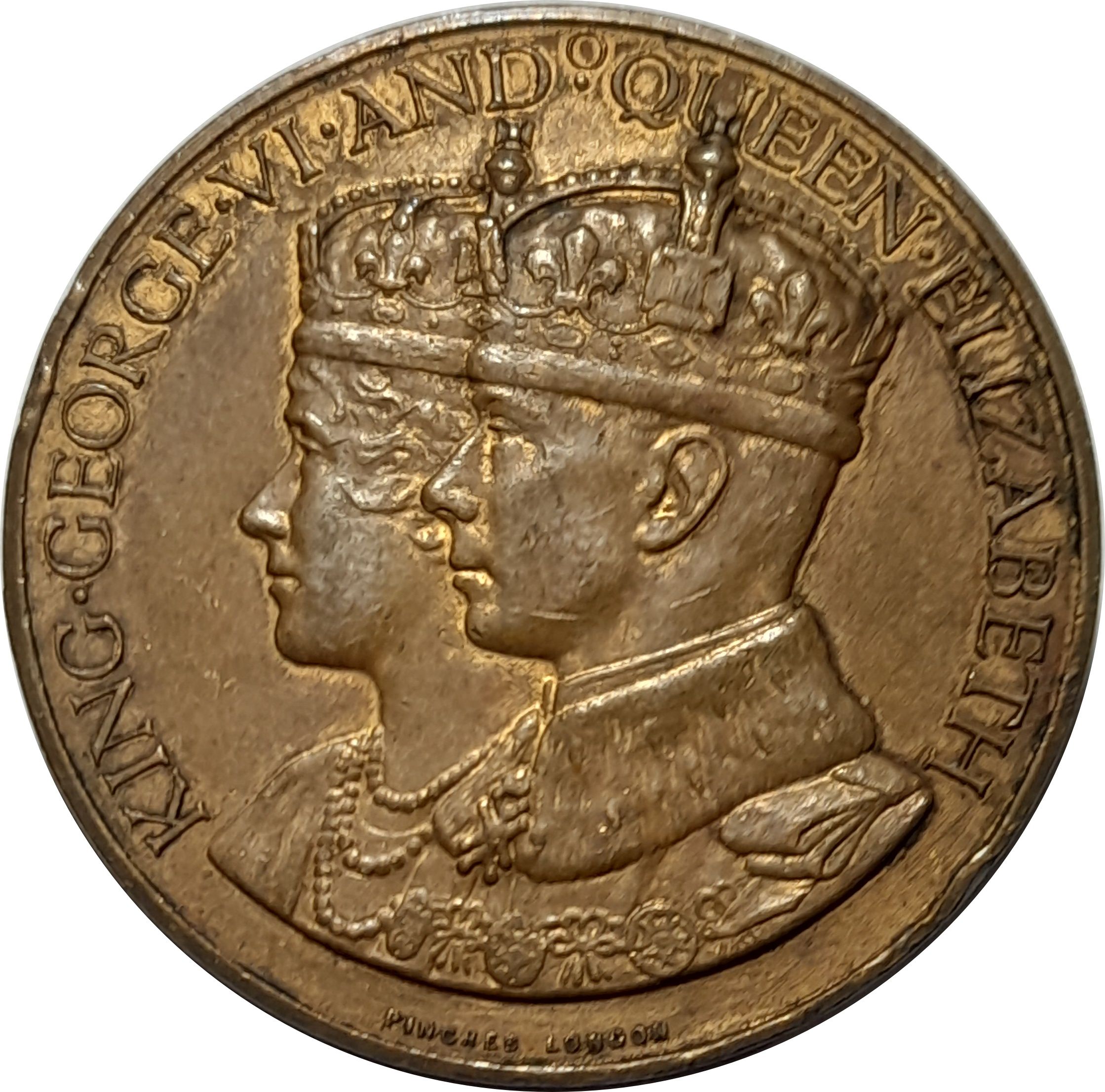 Медаль — Георг VI та Єлизавета (коронація; шпильки; позолочена бронза, 35 мм)