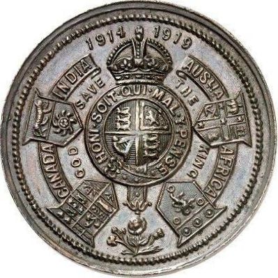 Описание: Орден Підв'язки, оточений щитами країн Співдружності. Прапори, що з'єднують щити, та троянда внизу.