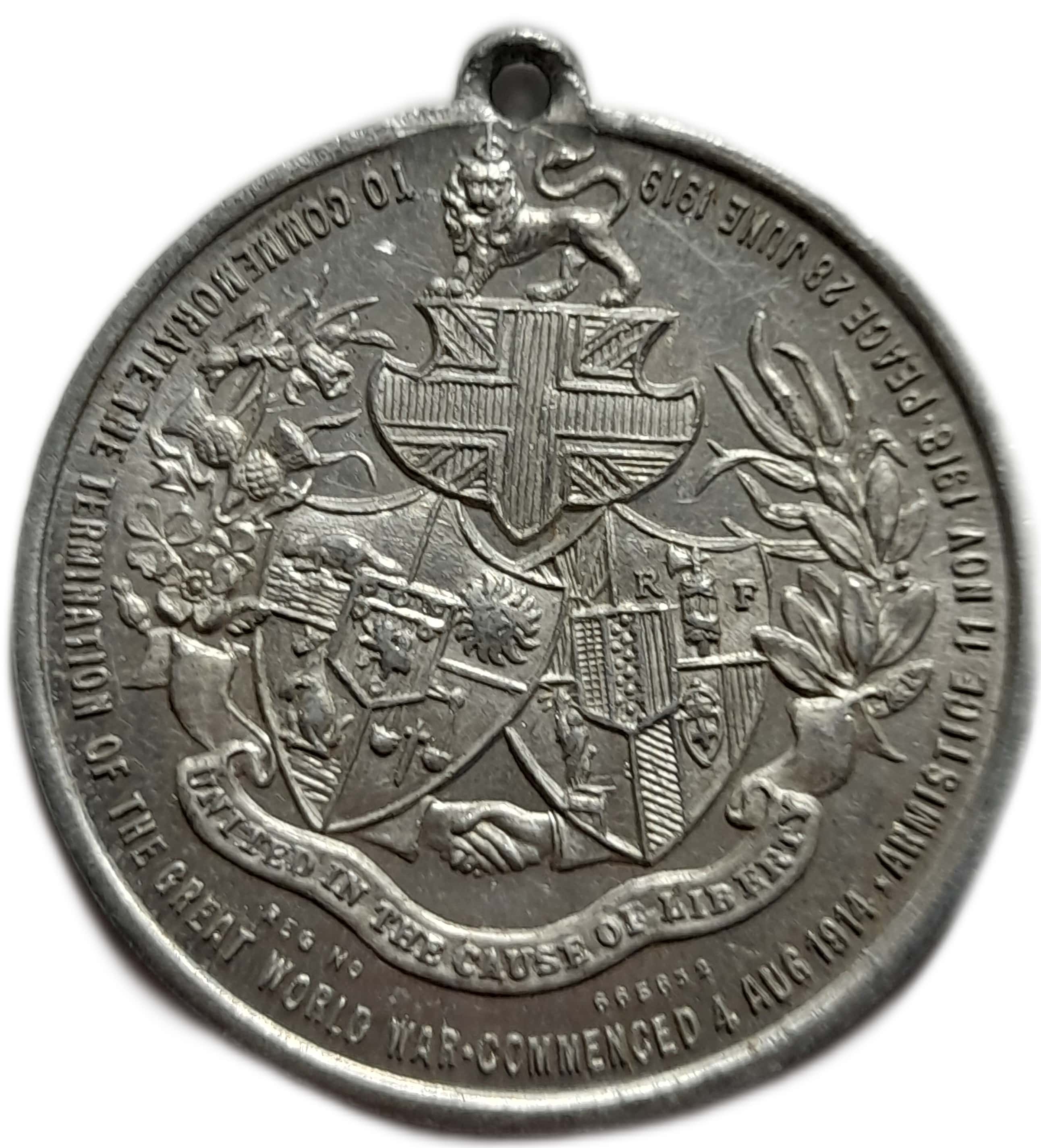TO COMMEMORATE THE TERMINATION OF THE GREAT WORLD WAR • COMMENCED 4 AUG 1914 • ARMISTICE 11 NOV 1918 • PEACE 28 JUNE 1919