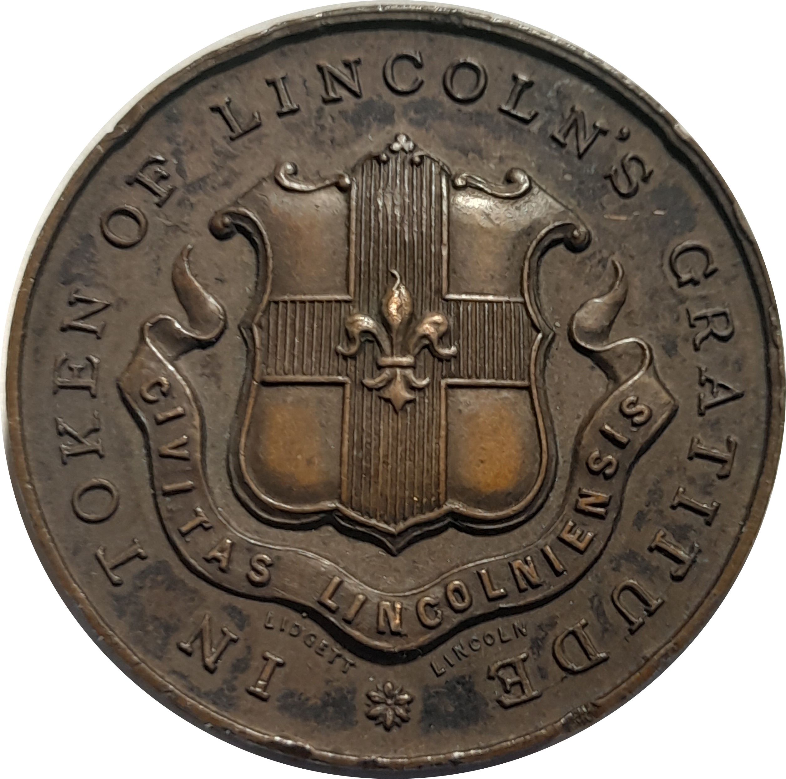 Описание: Герб Лінкольна з девізом та інформацією про виробника нижче