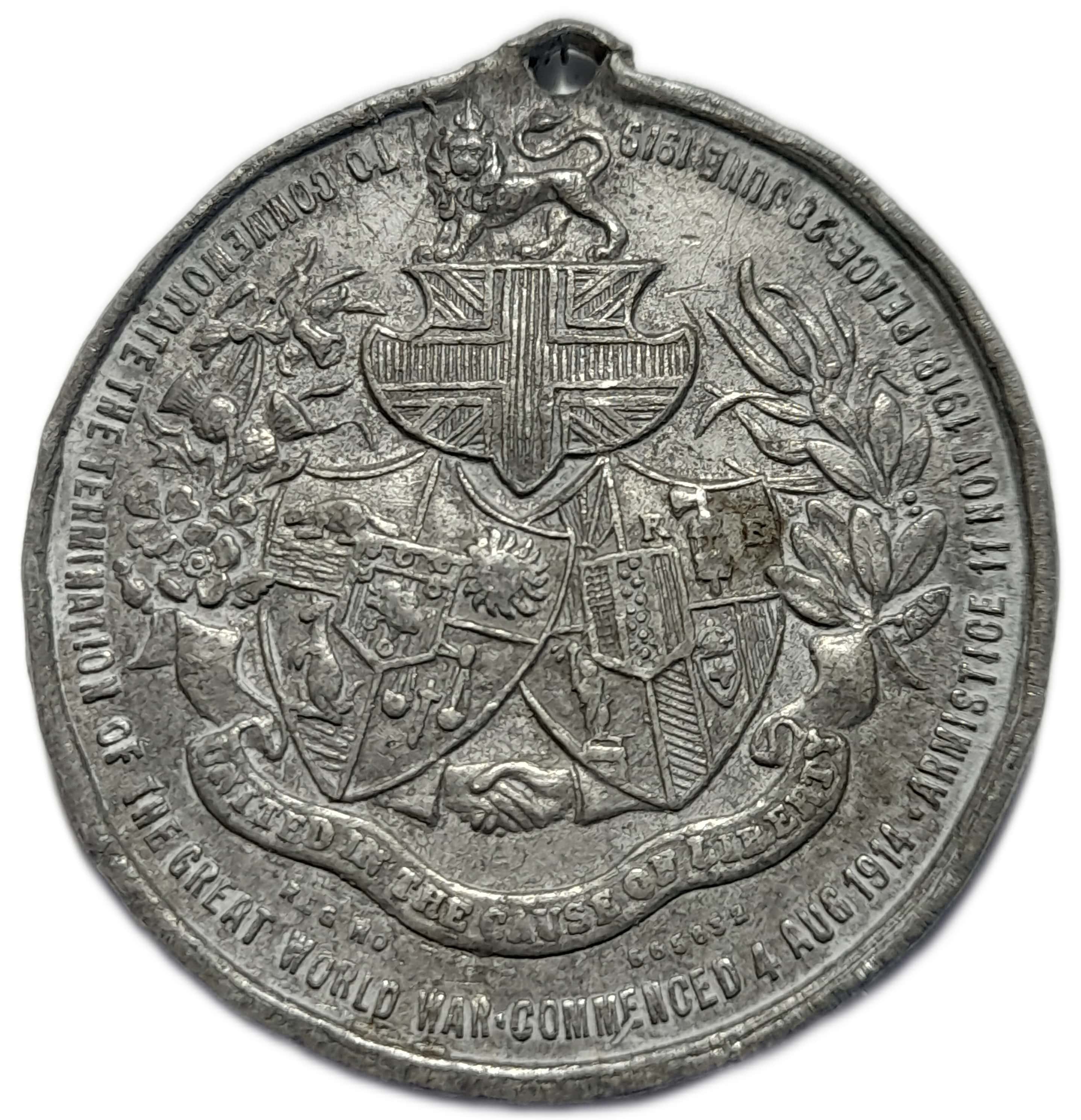 TO COMMEMORATE THE TERMINATION OF THE GREAT WORLD WAR • COMMENCED 4 AUG 1914 • ARMISTICE 11 NOV 1918 • PEACE 28 JUNE 1919