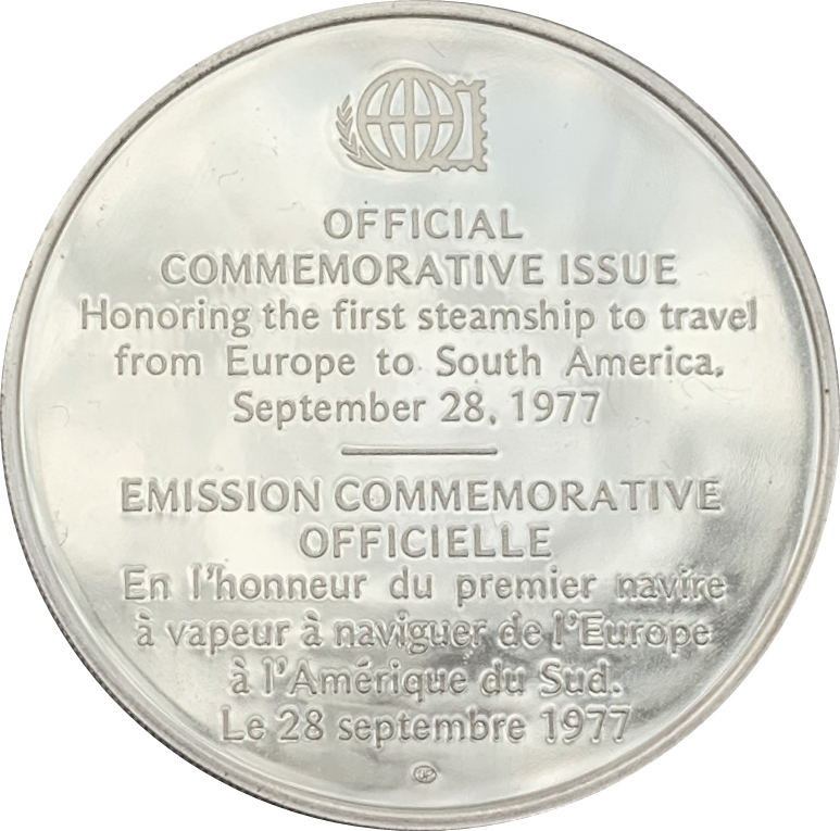 EMISSION COMMEMORATIVE // OFFICIELLE // En l'honneurdu premier navire // à vapeur à naviguer de l'Europe // à l'Amérique du Sud. // Le 28 septembre 1977