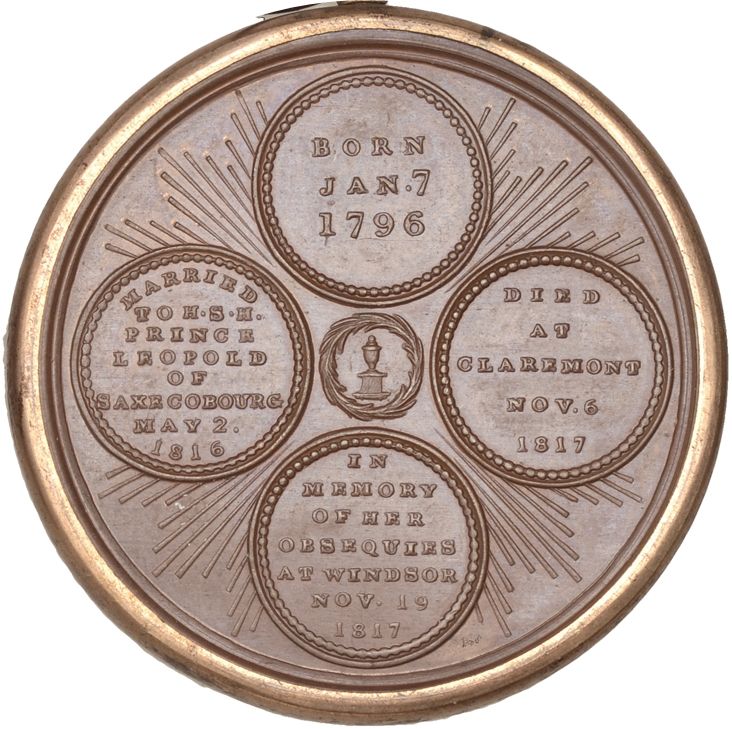 BORN JAN . 7 1796 MARRIED TO H.S.H. PRINCE LEOPOLD OF SAXE COBURG MAY 2 . 1816 DIED AT CLAREMONT NOV .6 1817 IN MEMORY OF HER OBSEQUIES AT WINDSOR NOV . 19 1817