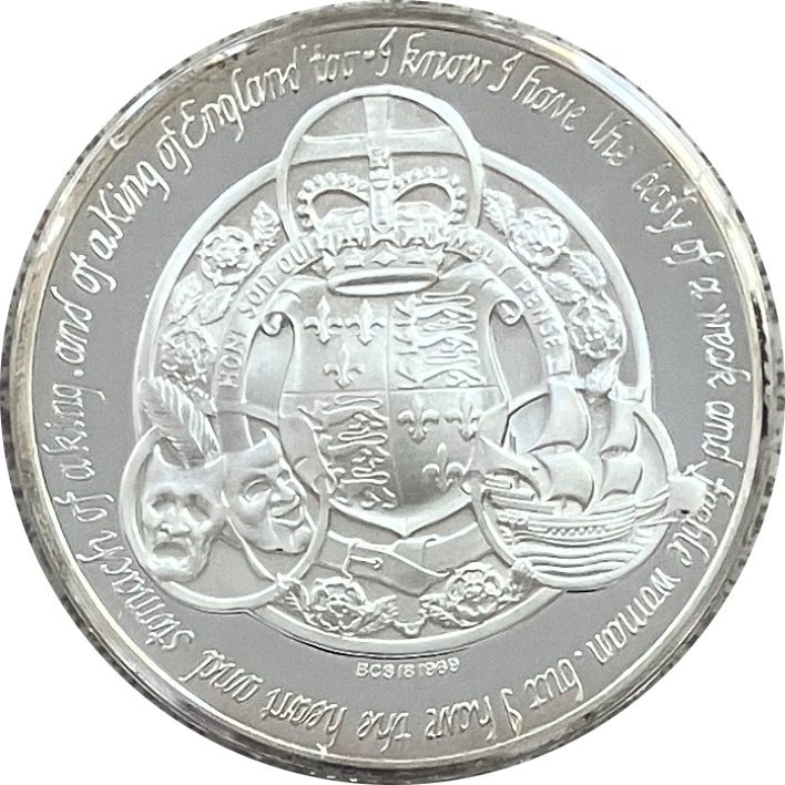 Описание: На английском гербе изображены розы с короной на вершине и символы, посвященные флоту, искусству и церкви.