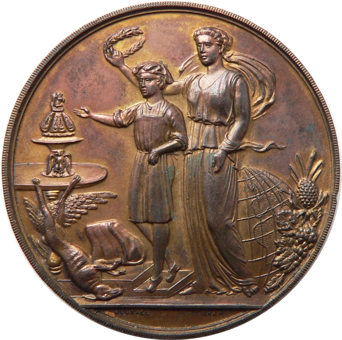 Описание: Двоє людей, обернених наполовину вліво; праворуч — жіноча фігура (Гігія) в класичному вбранні, яка тримає лавровий вінок, щоб нагородити дитину ліворуч у кухарському фартуху та капелюсі. Вони вказують на стіл, на якому стоїть вишуканий пудинг; під столом — ігри та яловичина. За фігурами — глобус і фрукти.