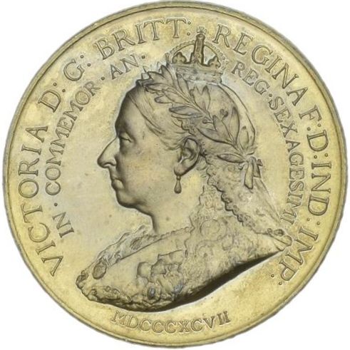 VICTORIA D : G : BRITT : REGINA F : D : IND : IMP :/IN · COMMEMOR · AN · REG · SEXAGESIMI