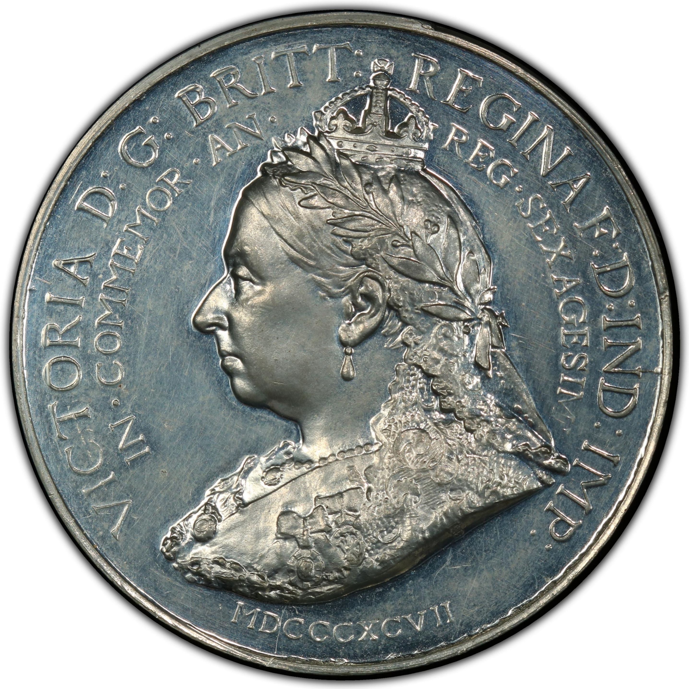 VICTORIA D : G : BRITT : REGINA F : D : IND : IMP :/IN · COMMEMOR · AN · REG · SEXAGESIMI