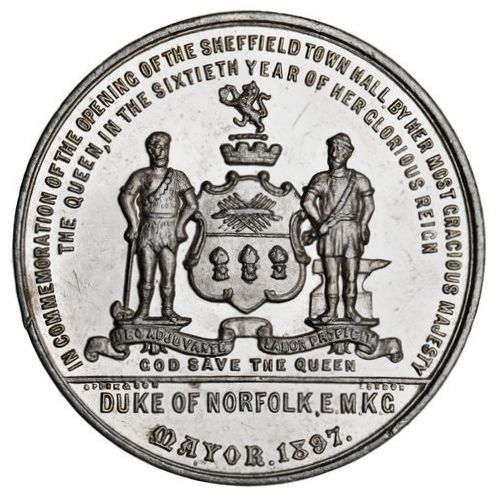 IN COMMEMORATION OF THE OPENING OF THE SHEFFIELD TOWN HALL.BY HER MOST GRACIOUS MAJESTY