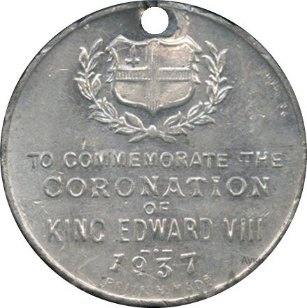 Медальйон — Едуард VIII (запропонована коронація; Фенвік; білий метал, 26 мм)