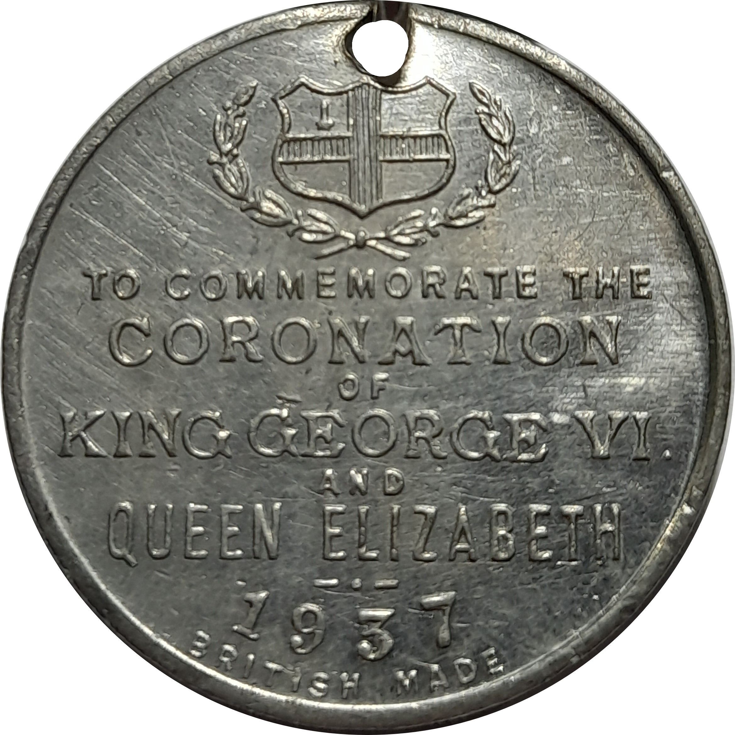 Медальйон — Георг VI та Єлизавета (Коронація; Лондон; білий метал, 25 мм)