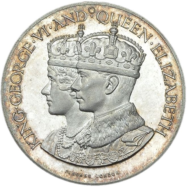 Медальйон — Георг VI та Єлизавета (Коронація; Пінчес; срібло, 29 мм)