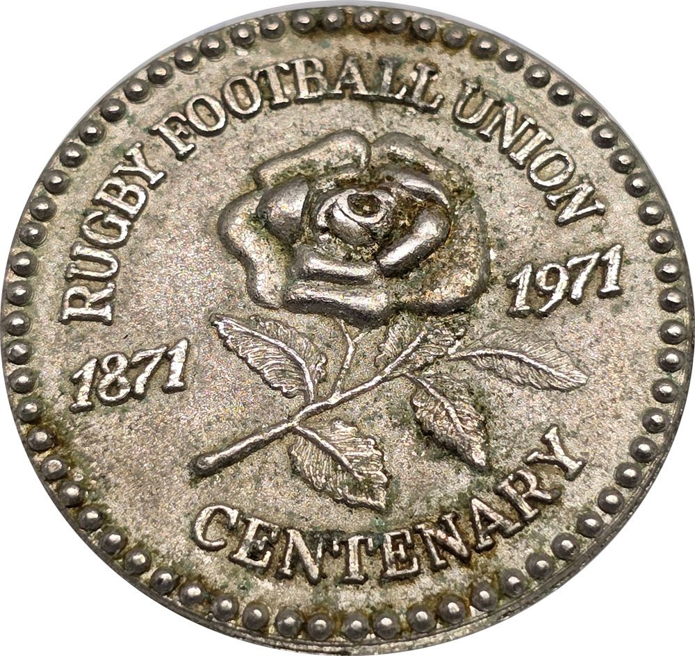 Описание: В центре изображена роза Тюдоров (официальный герб национальной сборной Англии по регби). Роза окружена бусинообразной каймой и круговой надписью.