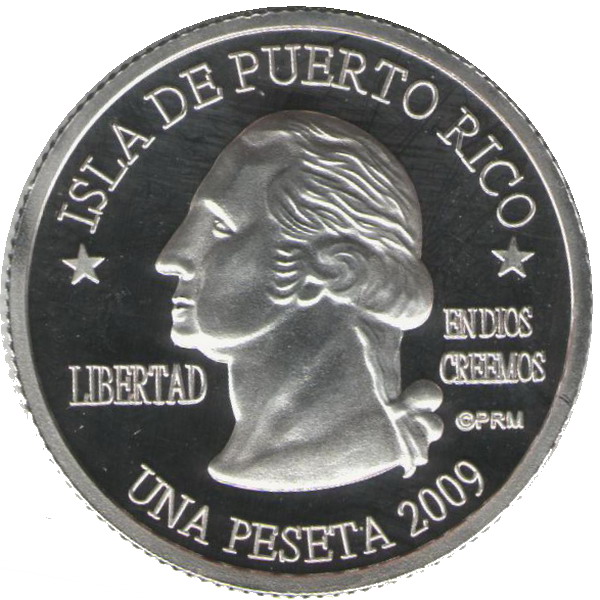 Описание: Портрет Джорджа Вашингтона, первого президента США с 1789 по 1797 год, в профиль слева сопровождается девизом «EN DIOS CREEMOS» и надписью «LIBERTAD» и окружен номиналом и надписью «ISLA DE PUERTO RICO».
