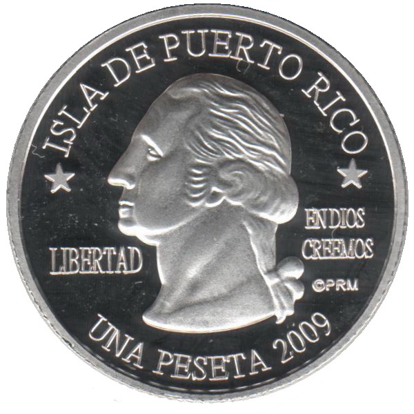 Описание: Портрет Джорджа Вашингтона, первого президента США с 1789 по 1797 год, в профиль слева сопровождается девизом «EN DIOS CREEMOS» и надписью «LIBERTAD» и окружен номиналом и надписью «ISLA DE PUERTO RICO».