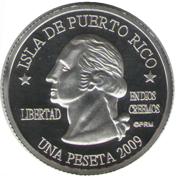 Описание: Портрет Джорджа Вашингтона, первого президента США с 1789 по 1797 год, в профиль слева сопровождается девизом «EN DIOS CREEMOS» и надписью «LIBERTAD» и окружен номиналом и надписью «ISLA DE PUERTO RICO».