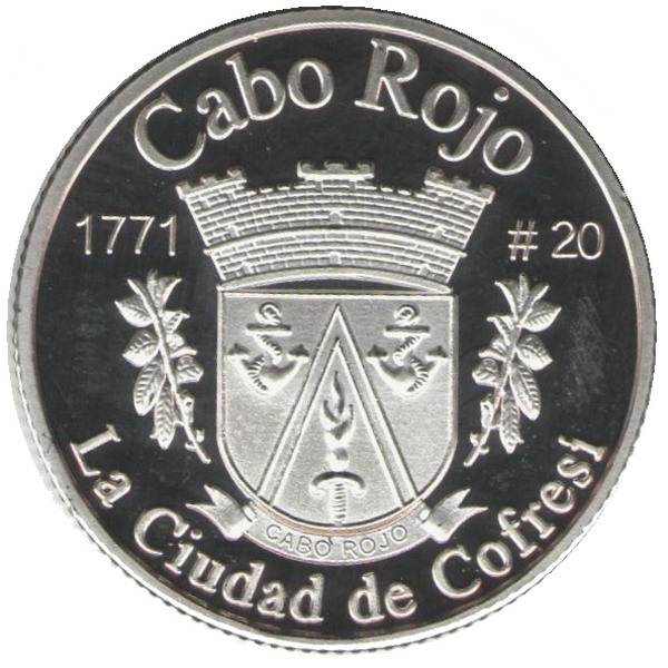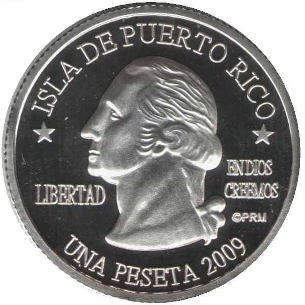 Описание: Портрет Джорджа Вашингтона, первого президента США с 1789 по 1797 год, в профиль слева сопровождается девизом «EN DIOS CREEMOS» и надписью «LIBERTAD» и окружен номиналом и надписью «ISLA DE PUERTO RICO».