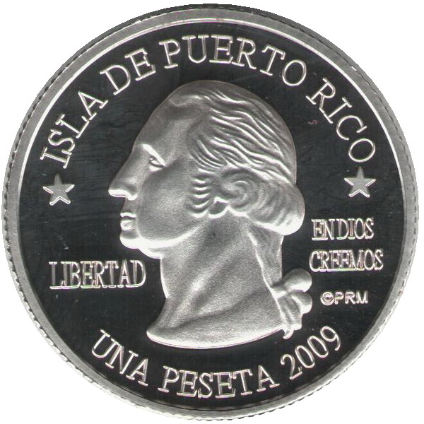 Описание: Портрет Джорджа Вашингтона, первого президента США с 1789 по 1797 год, в профиль слева сопровождается девизом «EN DIOS CREEMOS» и надписью «LIBERTAD» и окружен номиналом и надписью «ISLA DE PUERTO RICO».