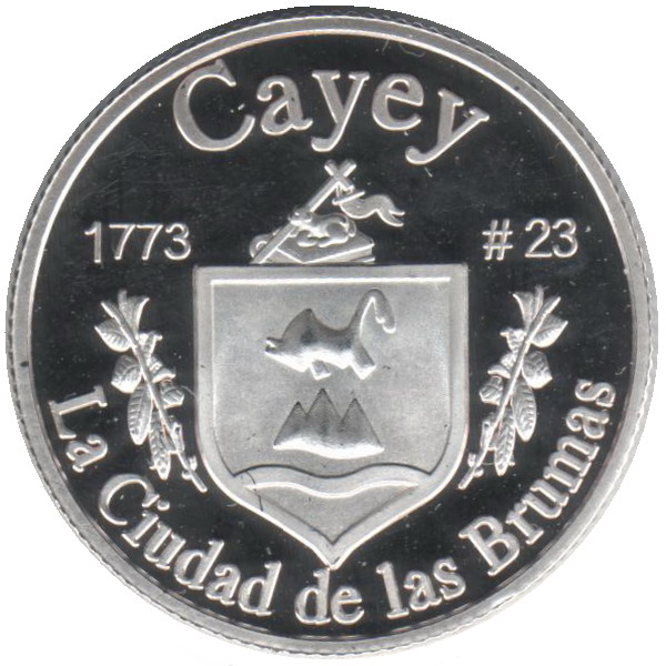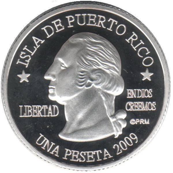 Описание: Портрет Джорджа Вашингтона, первого президента США с 1789 по 1797 год, в профиль слева сопровождается девизом «EN DIOS CREEMOS» и надписью «LIBERTAD» и окружен номиналом и надписью «ISLA DE PUERTO RICO».