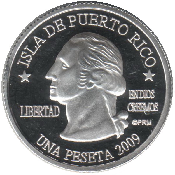 Описание: Портрет Джорджа Вашингтона, первого президента США с 1789 по 1797 год, в профиль слева сопровождается девизом «EN DIOS CREEMOS» и надписью «LIBERTAD» и окружен номиналом и надписью «ISLA DE PUERTO RICO».