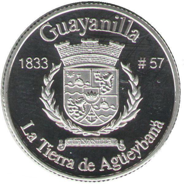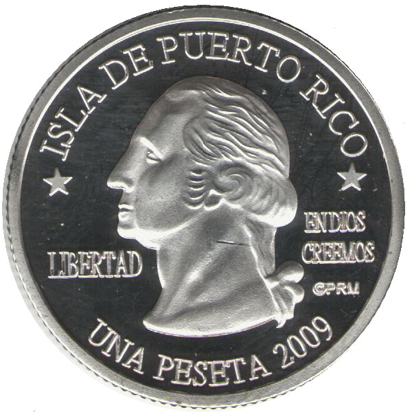 Описание: Портрет Джорджа Вашингтона, первого президента США с 1789 по 1797 год, в профиль слева сопровождается девизом «EN DIOS CREEMOS» и надписью «LIBERTAD» и окружен номиналом и надписью «ISLA DE PUERTO RICO».