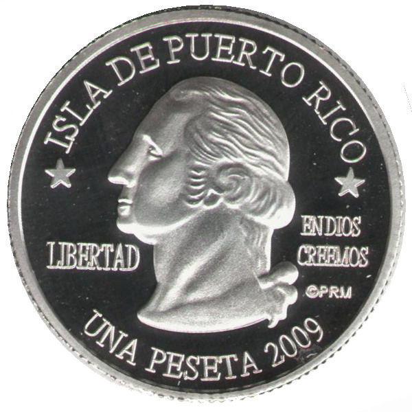 Описание: Портрет Джорджа Вашингтона, первого президента США с 1789 по 1797 год, в профиль слева сопровождается девизом «EN DIOS CREEMOS» и надписью «LIBERTAD» и окружен номиналом и надписью «ISLA DE PUERTO RICO».